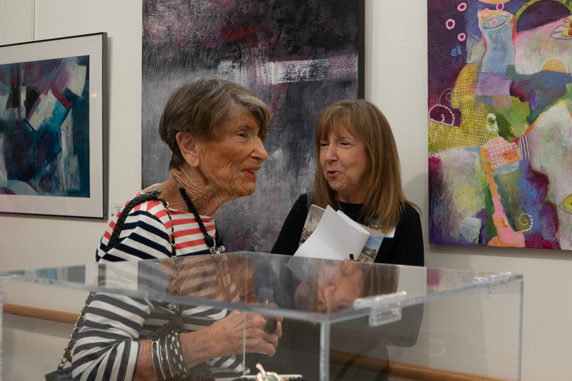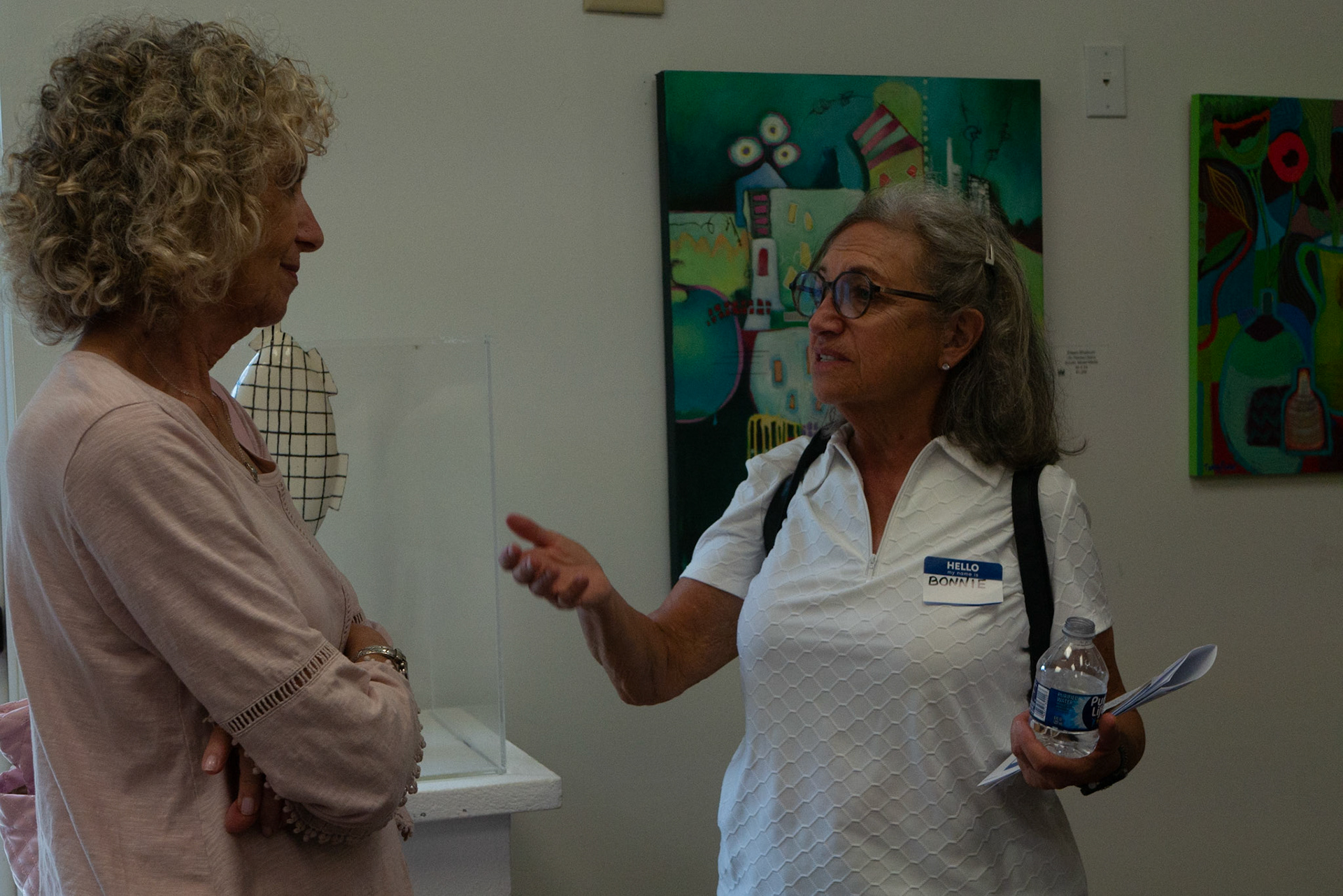 The opening of a gallery featuring the work of female artists who create using a diverse array of mediums.